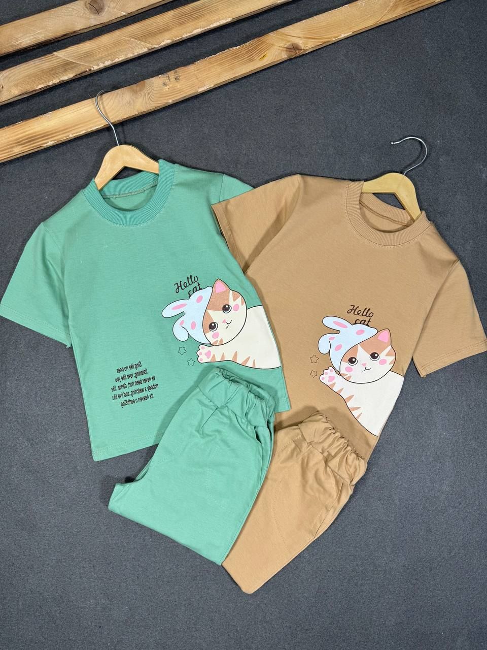 ست آستین کوتاه طرح گربه کنار 2022